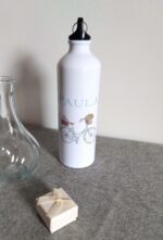 Para llevar el agua al monte o a la playa, al gimnasio, de viaje, las botellas de aluminio personalizadas a color, con tu nombre, son la solución perfecta. Puedes llevarla dentro de tu mochila o bolso, o por fuera colgada del mosquetón, o en la mano. Capacidad 800 ml. Si buscas un modelo vintage este modelo con la bicicleta es para ti. También es un bonito regalo para los invitados a un evento. Indícanos tu nombre en la casilla Personalízame. Si prefieres un modelo totalmente a tu gusto, escríbenos a web@mregalos.com y la diseñaremos encantados para ti.