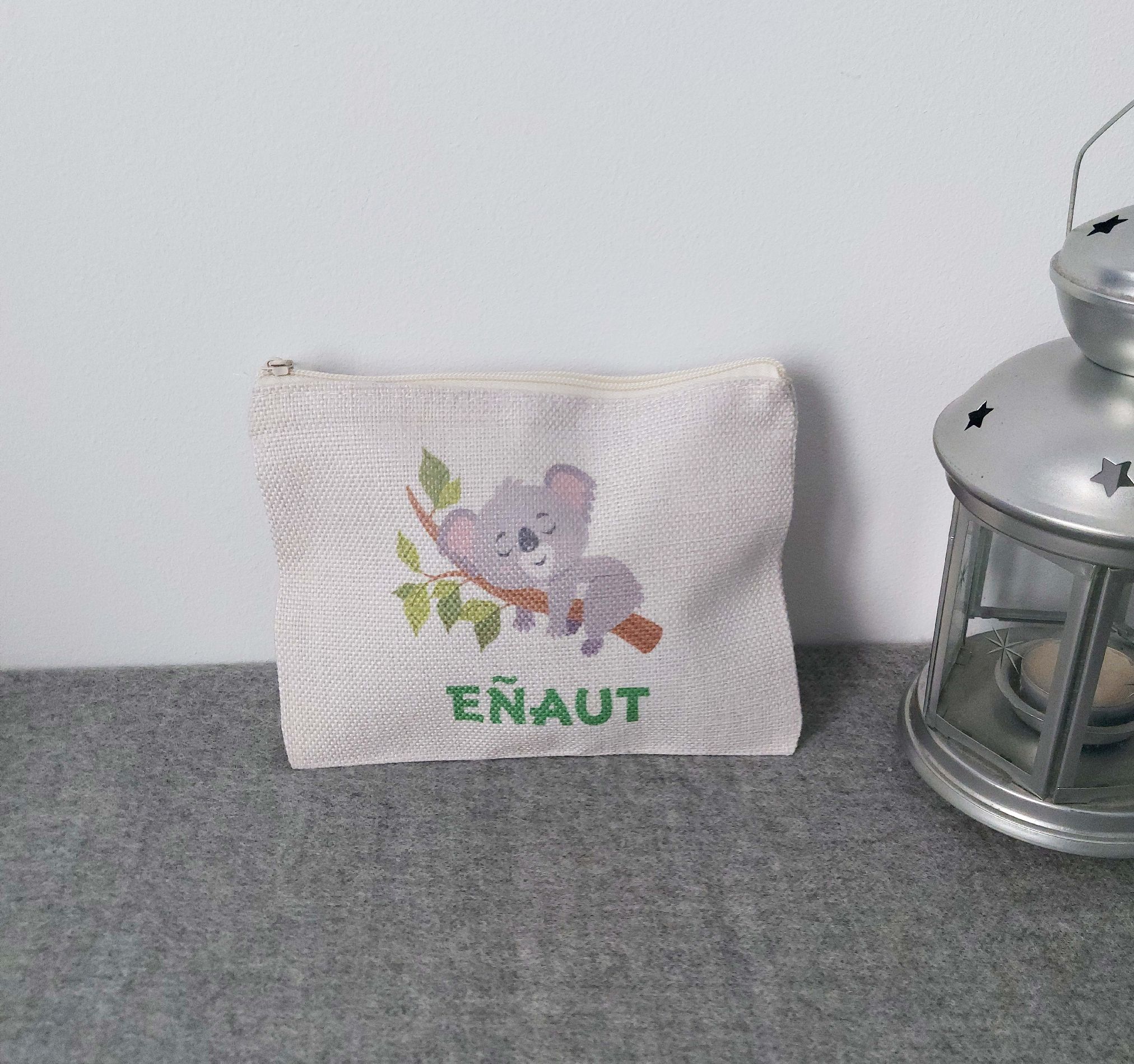 Si buscas un estuche, bolsita, o neceser ligero, personalizado, con un simpático koala, este es tu modelo. Perfecto para llevar los lápices y pinturitas del peque, para llevar su ropita interior, o cositas de aseo. Medidas 15 x 19 cm. Se puede lavar en lavadora. Y si quieres que vaya conjuntado, tenemos a juego el mismo diseño en mochila o bolsa. Escribe el nombre en la casilla Personalízame. Si prefieres un modelo con un diseño totalmente a tu gusto, escríbenos a web@mregalos.com, y lo diseñaremos encantados para ti.