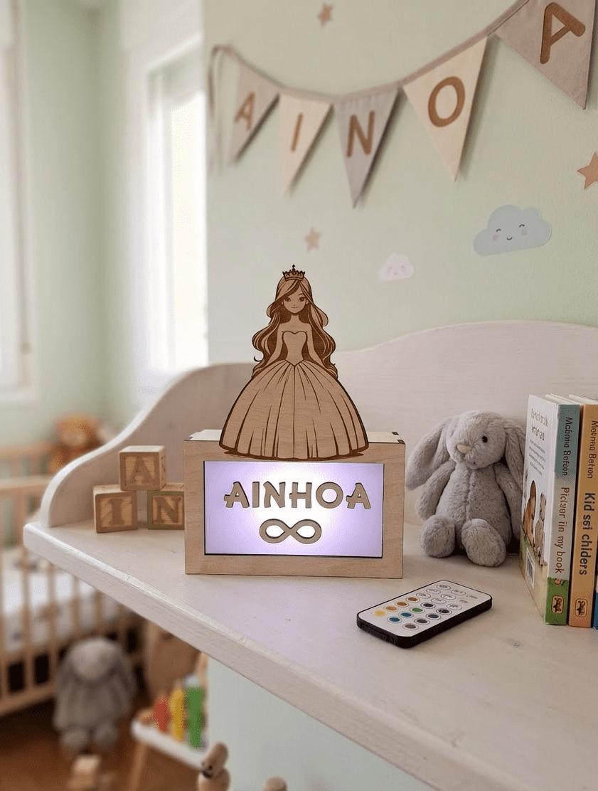 Si a tu peque le gustan las princesas, esta lámpara personalizada con su nombre es perfecta para su habitación