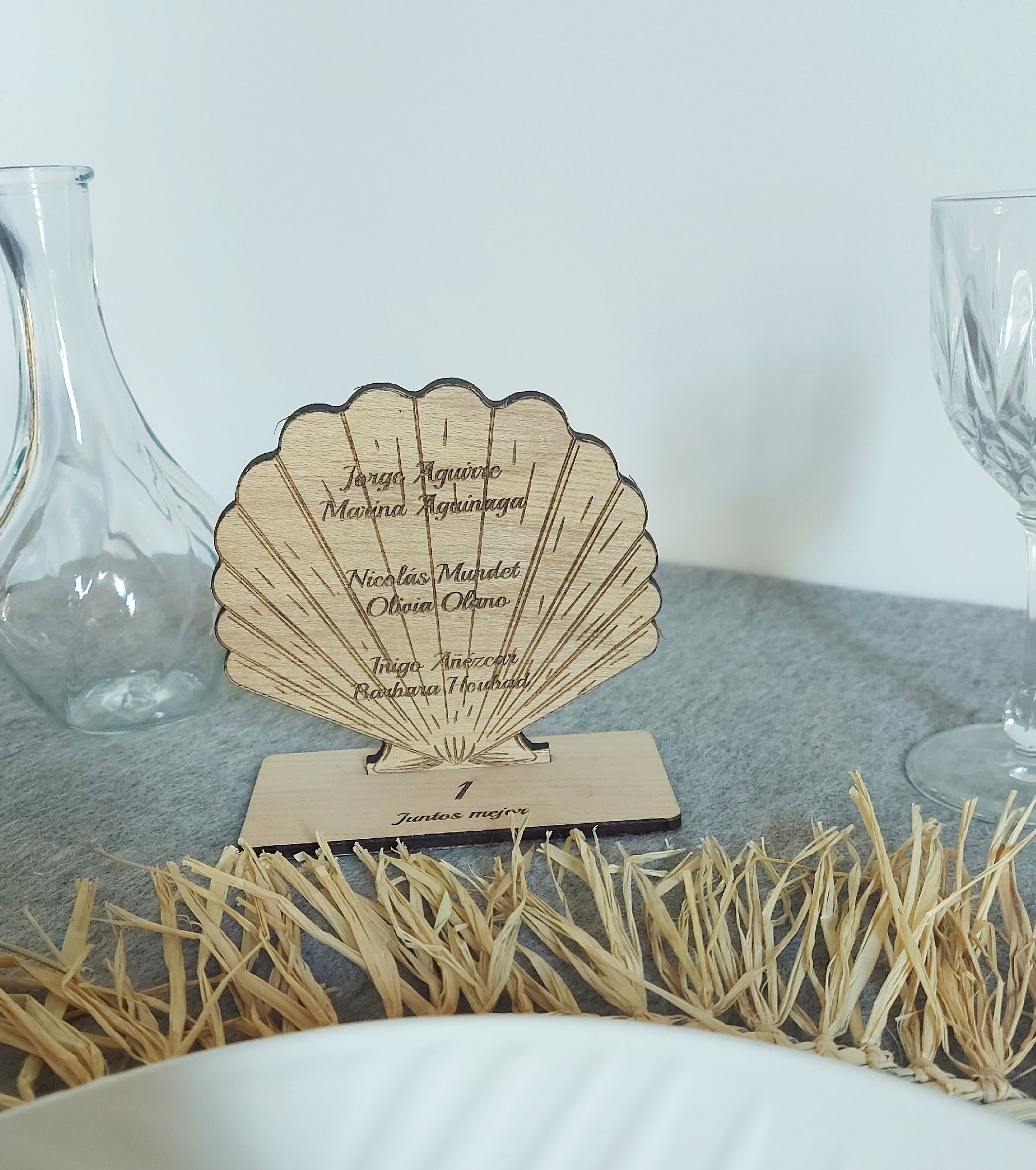 Si quieres organizar las mesas de los invitados de una comida o cena especial, un Bautizo, Boda o Comunión, y que cada invitado encuentre su sitio fácilmente, nuestros meseros son una solución perfecta. Realizados en madera uno a uno, en forma de concha, que nos recuerda a la playa y al Festival de Cine de San Sebastián. Medida aproximada 12 x 12 cm. Escribe los nombres de tus invitados y nombre o número de mesa en la casilla Personalízame o envíanos un correo, indicándonos el número de pedido. Si quieres un modelo totalmente a tu gusto, envíanos un correo a web@mregalos.com
