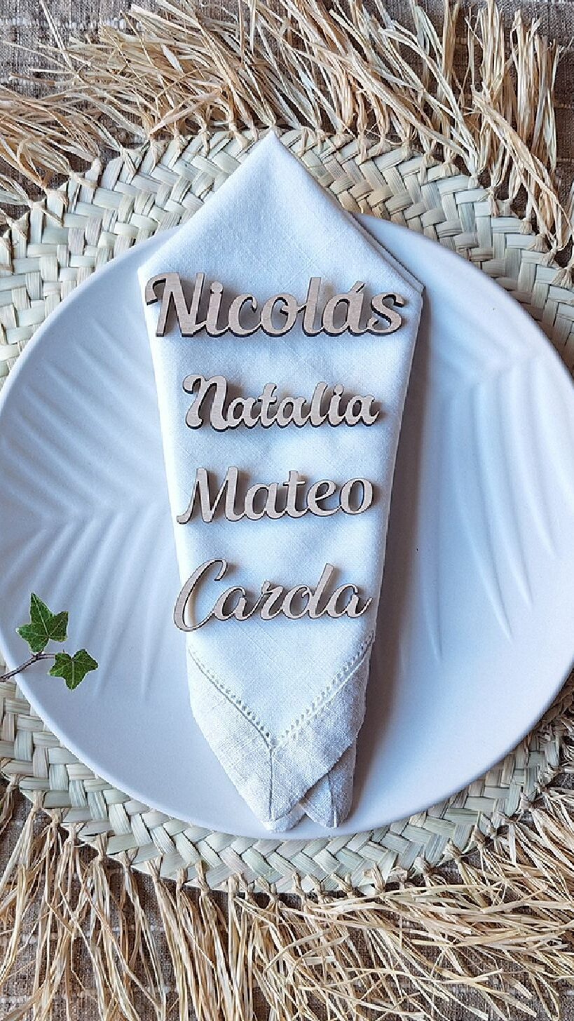 Imagina organizar una comida o cena, o en un Bautizo, Boda o Comunión, y que cada invitado encuentre un imán con su nombre en la mesa, que luego se llevarán a casa como recuerdo del Gran Día. Perfecto para colocar en la nevera como sujeta fotos o sujeta notas, o de manera decorativa. Realizados en madera uno a uno con mucho mimo. Medida aproximada 10 cm. Escribe los nombres en la casilla Personalízame, o si lo prefieres, envíanos un correo con el número de pedido a web@mregalos.com. Pedido mínimo 15 unidades.