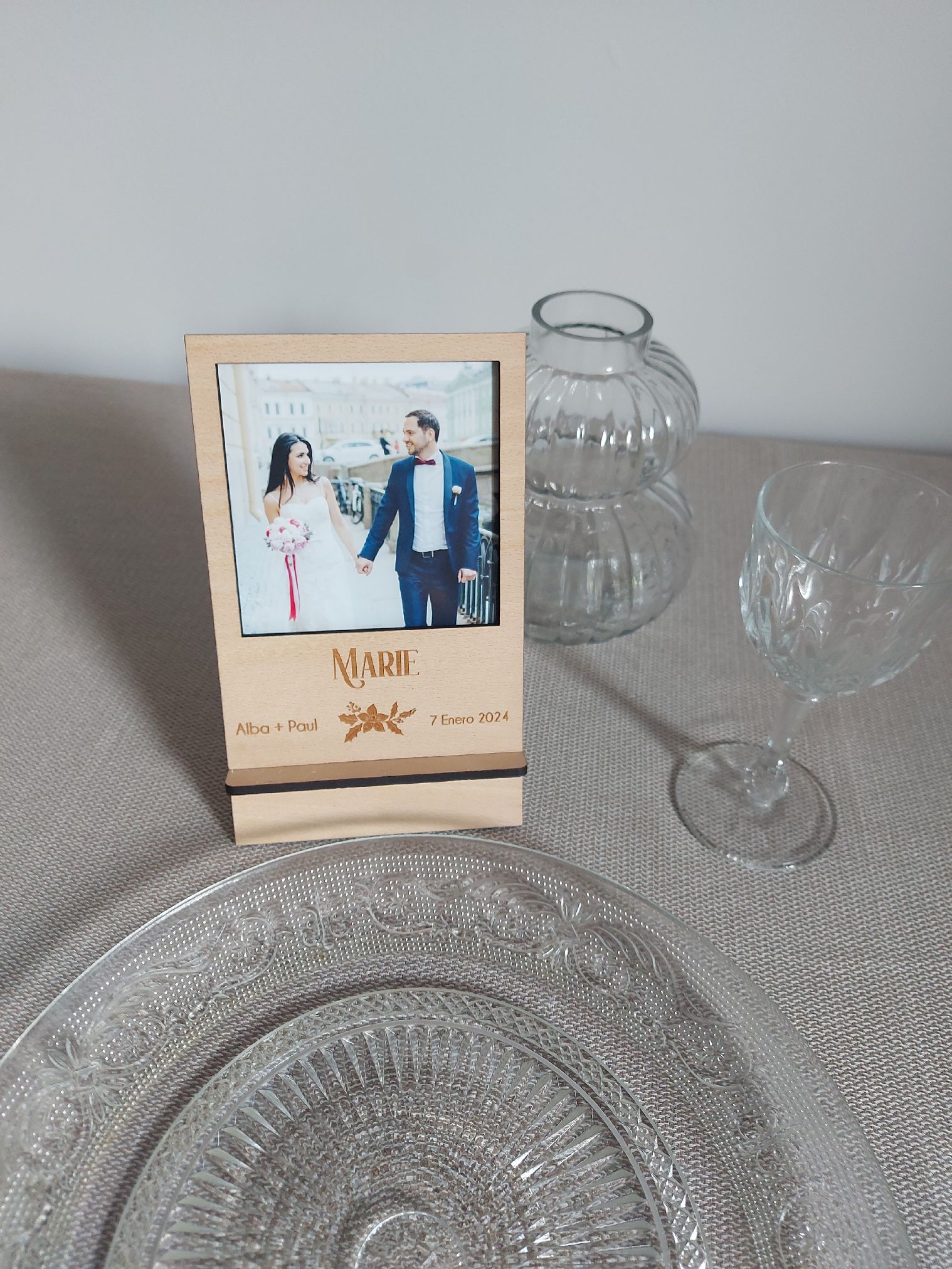 Marquito de fotos con pié personalizado, de madera