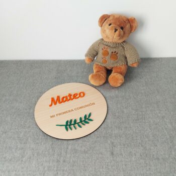 Placa de madera COMUNIÓN con nombre en Color
